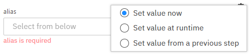 8. Above the InstanceIds field, click the settings icon and select Set value from the previous step.