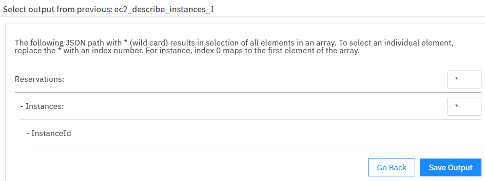 11. In the output, click Configure, that opens a modal with the JSON Schema of the response output of the EC2 described action.
